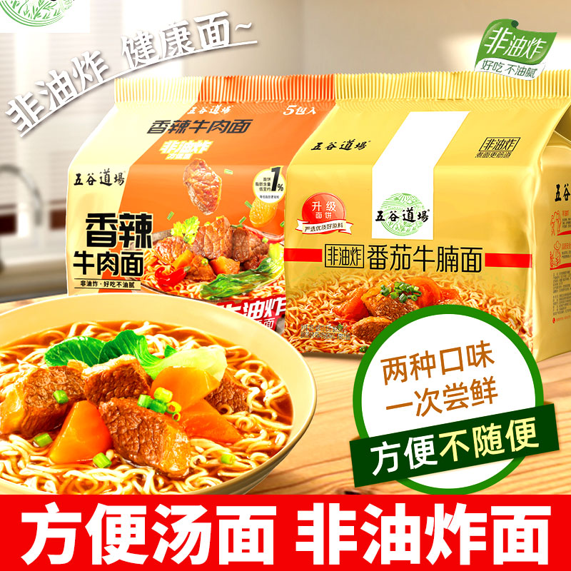 8袋五谷道场非油炸方便面经典 红烧牛肉面多口味速食夜宵免煮泡面