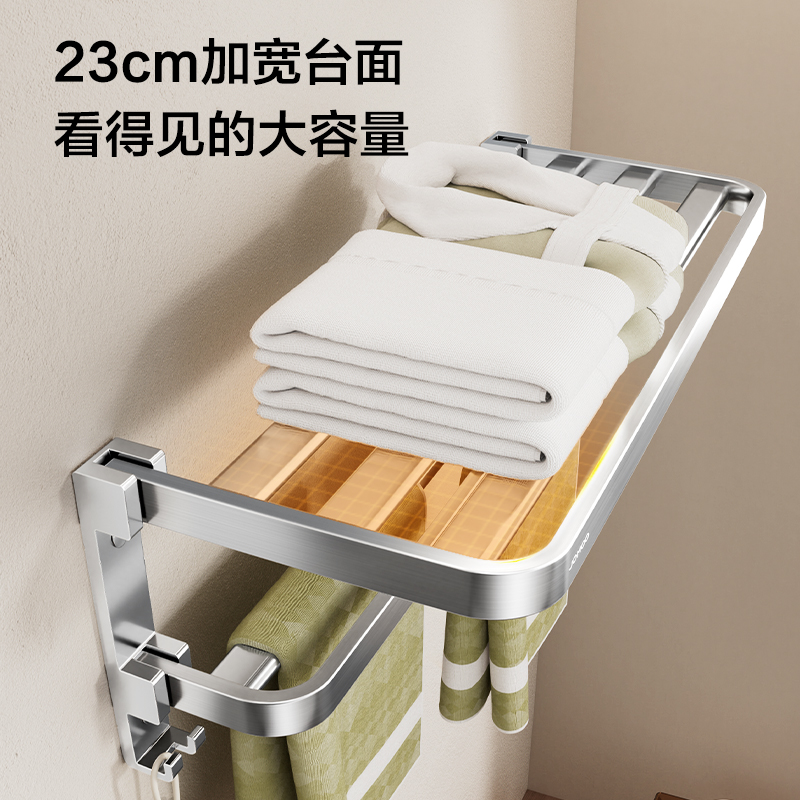 九牧浴室挂件卫生间置物架双折叠加宽毛巾架防锈耐腐太空铝免打孔