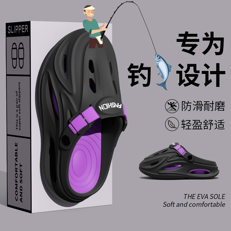 开车防滑防臭涉水沙滩钓鱼凉鞋 踩屎感厚底洞洞鞋 2025新款 夏季 男士