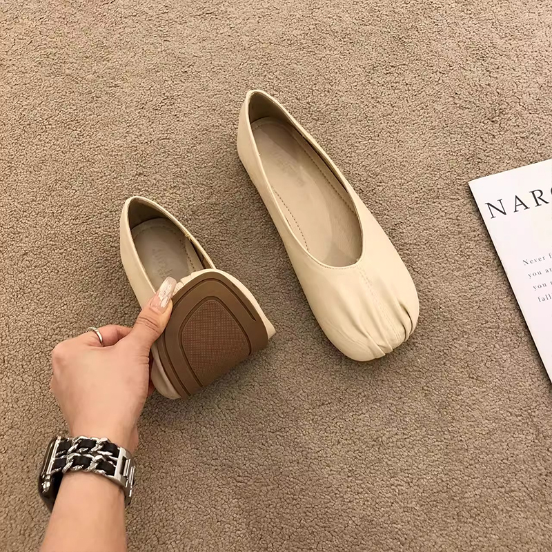 绝美气质通勤平底鞋 小个子内增高裸色方扣浅口单鞋 女2025春夏新款
