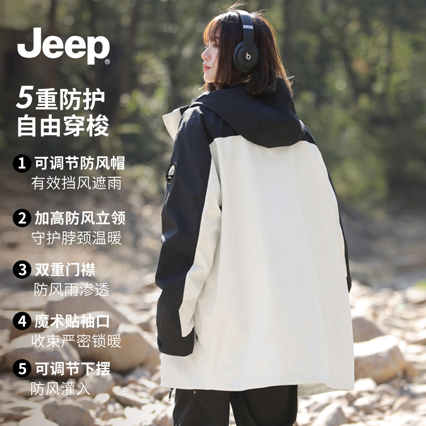 jeep吉普户外防风冲锋外套女生2025新款 防泼水徒步登山服连帽夹克