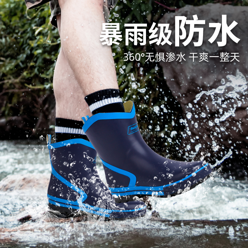 户外轻便四季 橡胶耐磨防水鞋 雨靴 男款 非常行中筒防水防滑雨鞋