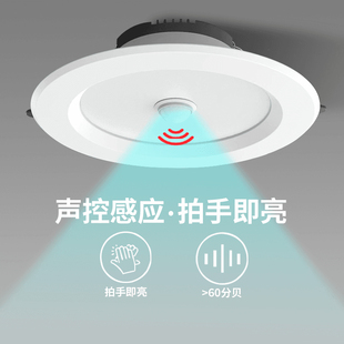led智能声控人体感应筒灯嵌入式 天花灯家用吊顶玄关过道走廊开孔