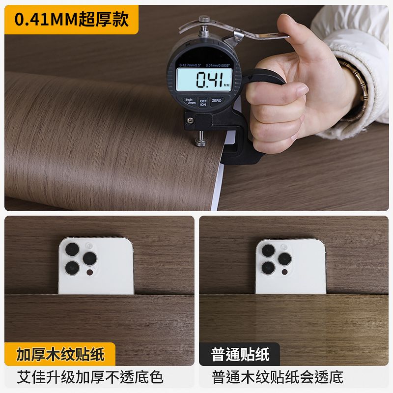科技灰色直纹木纹贴纸自粘防水木饰面酒店背景墙木门家具翻新贴膜