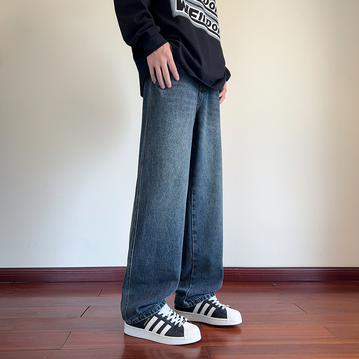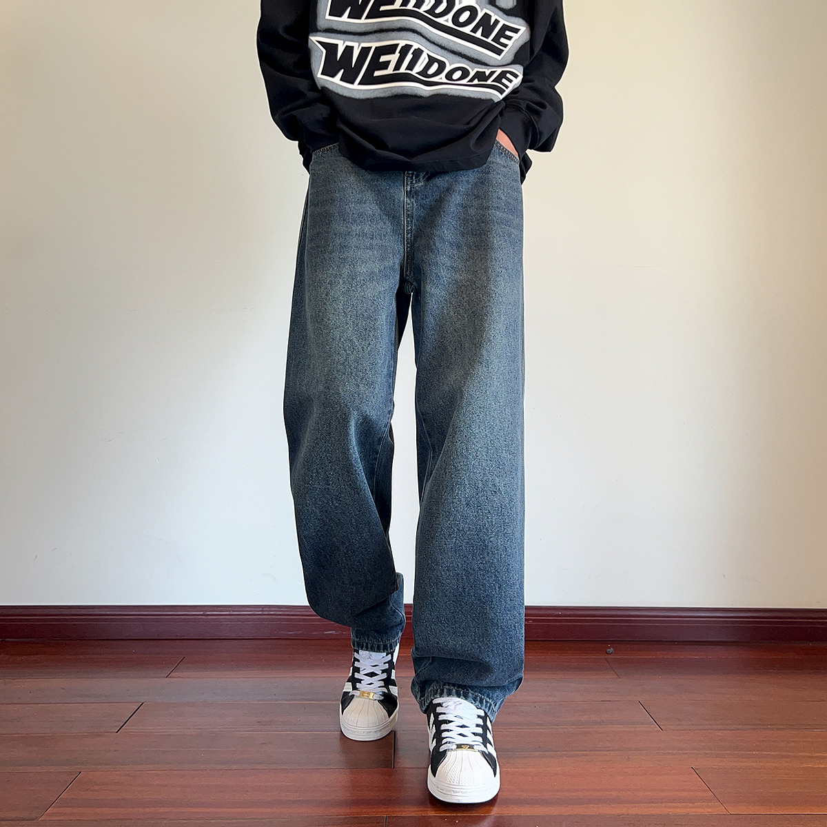 新款 春秋百搭休闲直筒裤 男士 小众复古美式 子W 牛仔长裤 唐狮25秋季
