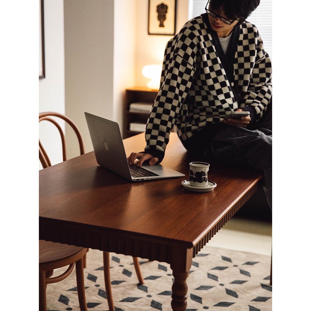 北欧中古实木餐桌椅组合客厅复古饭桌长方形咖啡厅桌子办公桌书桌