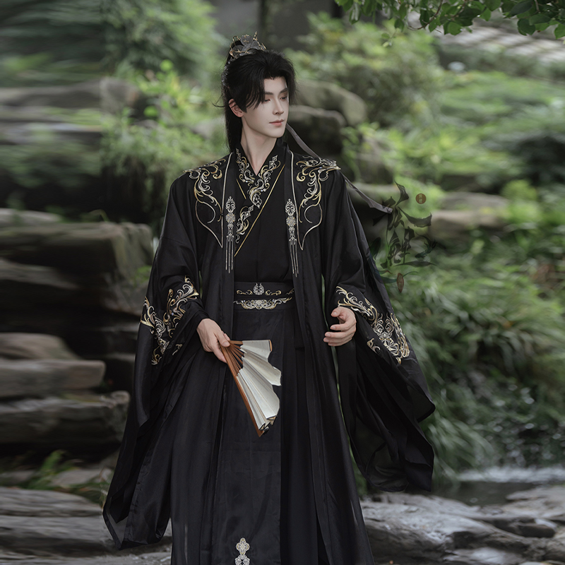 衫 孤鲤 云肩黑白飘逸大袖 原创汉服男女同款 刺绣仙气清冷感 青玄