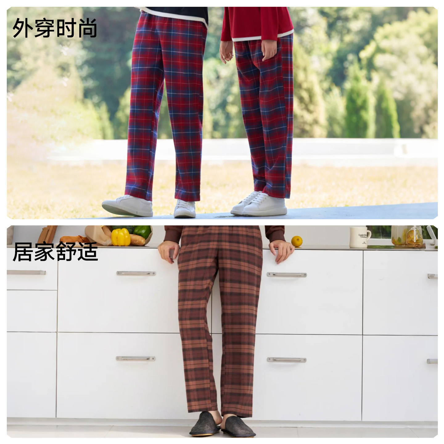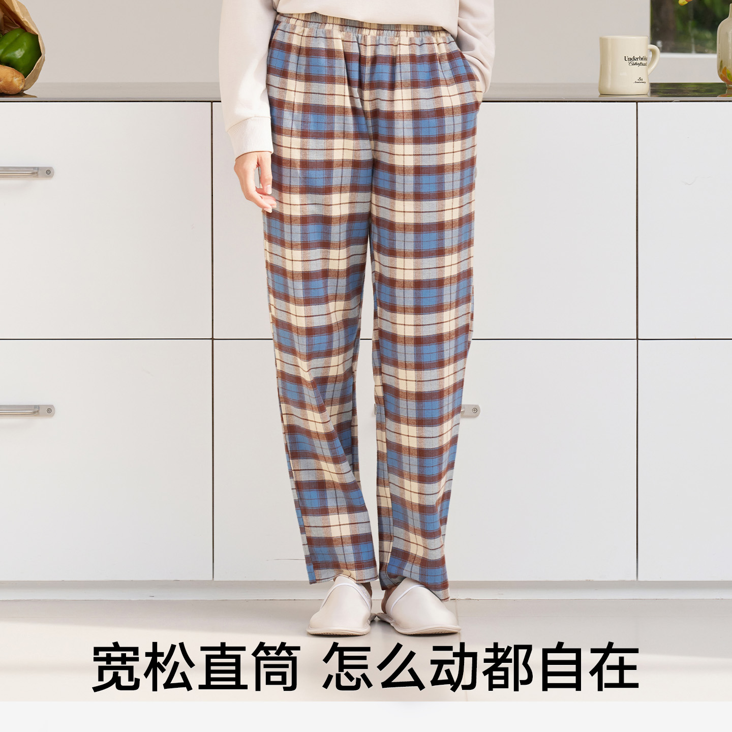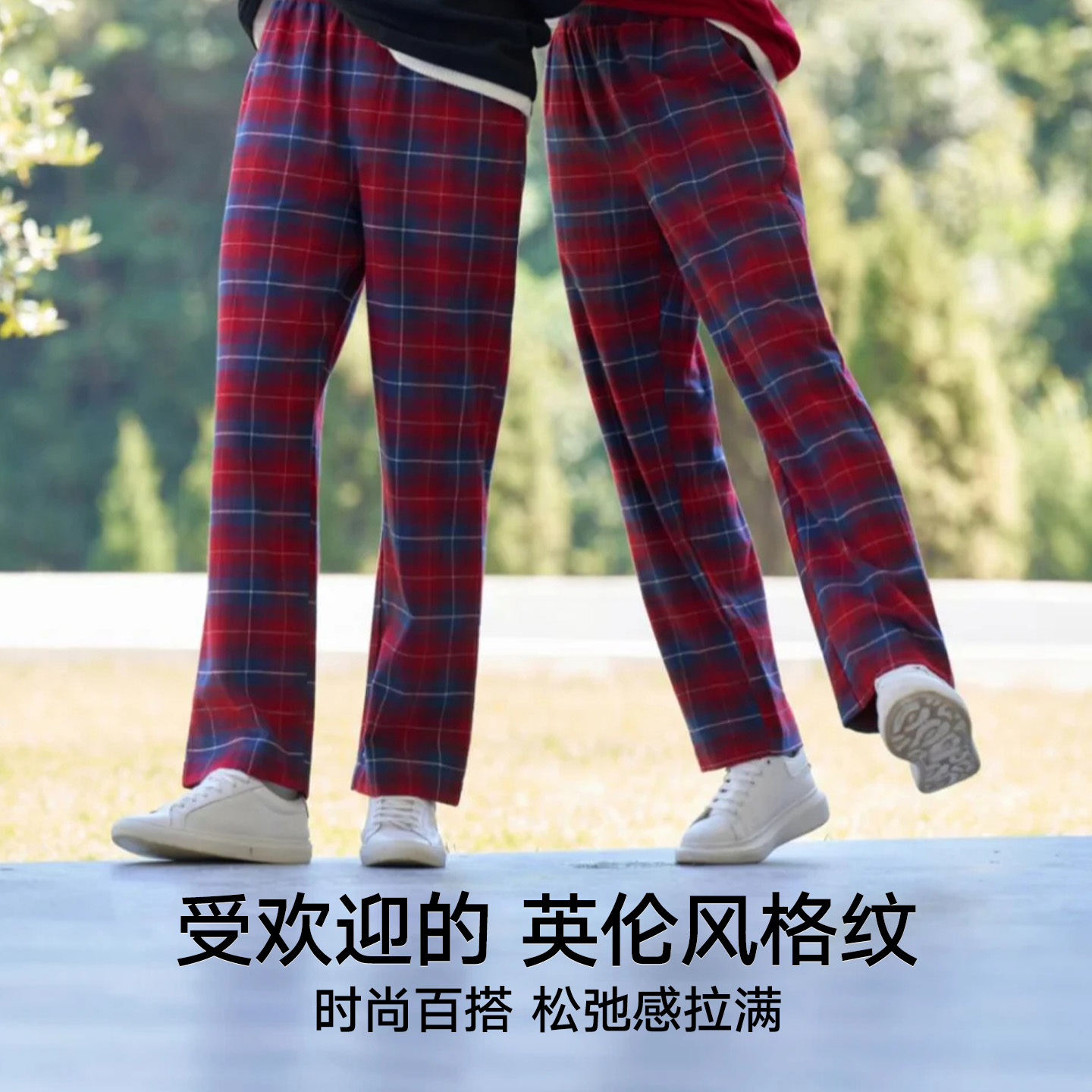 睡裤 松山棉店全棉格子长裤 100%棉家居裤 百搭英伦风宽松直筒裤 时尚