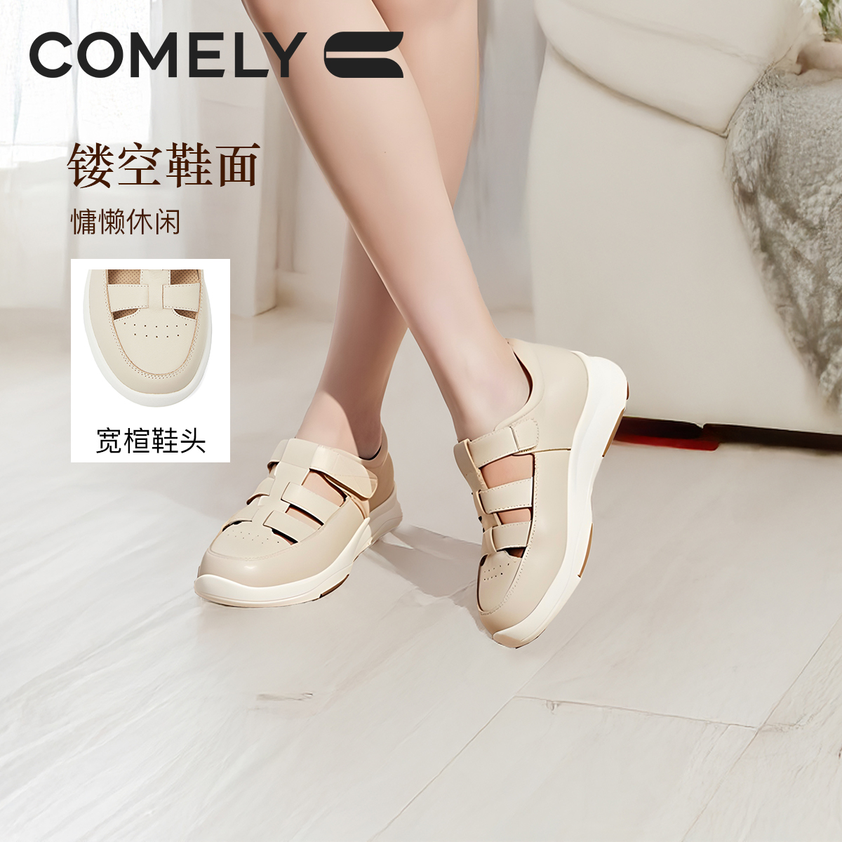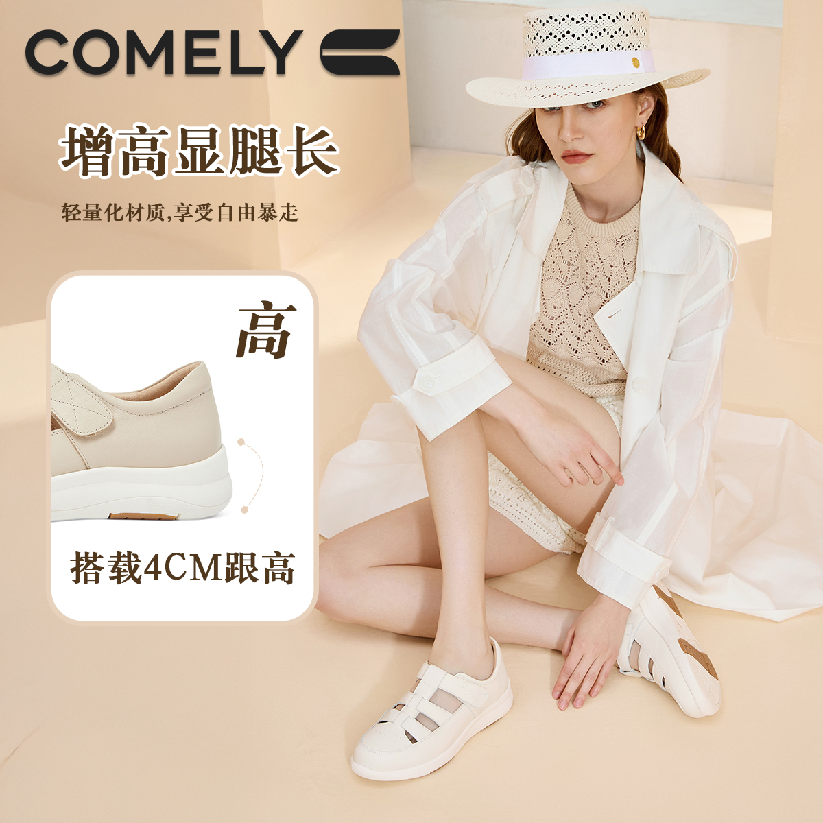 增高猪笼鞋 休闲包头凉鞋 女厚底2025年春夏新款 康莉真皮镂空罗马鞋