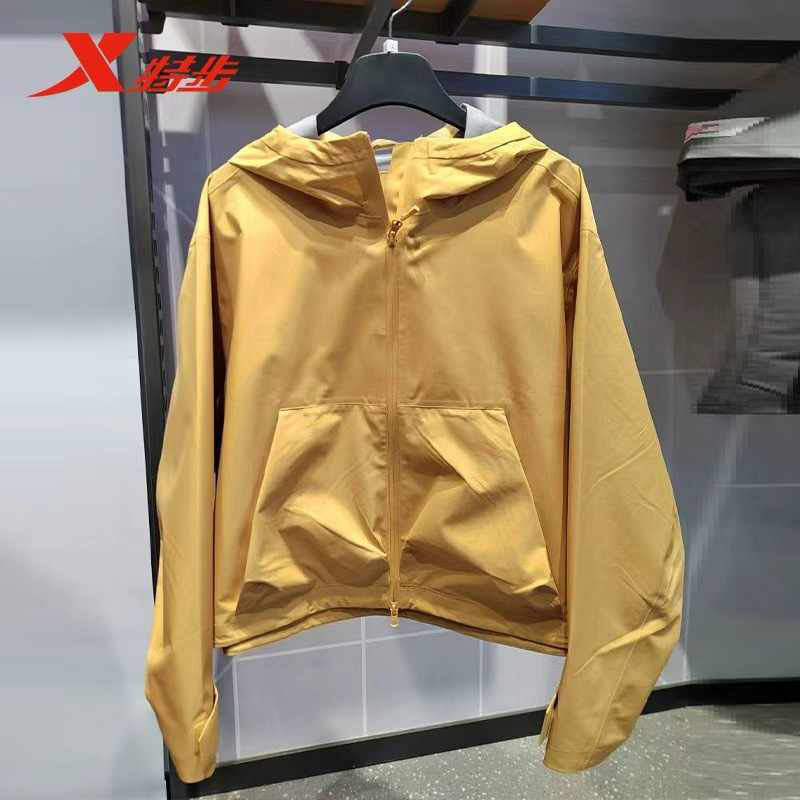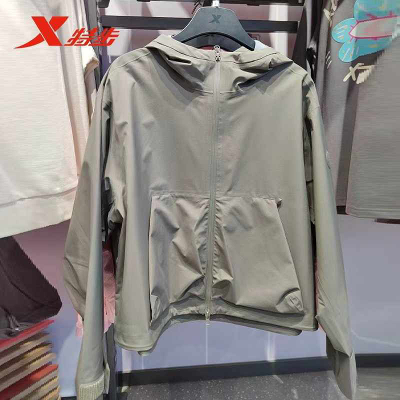 特步运动冲锋衣女2025秋季 户外防风保暖连帽外套9753282C0176 新款