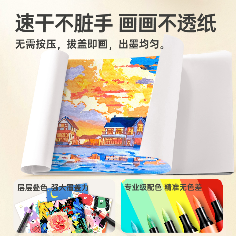 掌握单支直液式 软头丙烯马克笔自选不易透色可叠色补色单色单只60色80色儿童小学生美术专用幼儿园黑色红色白