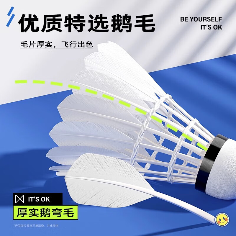 川崎羽毛球鹅毛黑毛球12只装 耐打飞行稳定室内室外专业比赛训练球