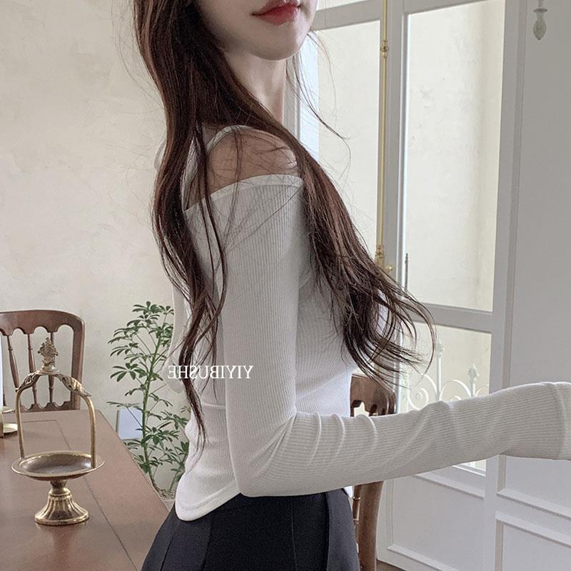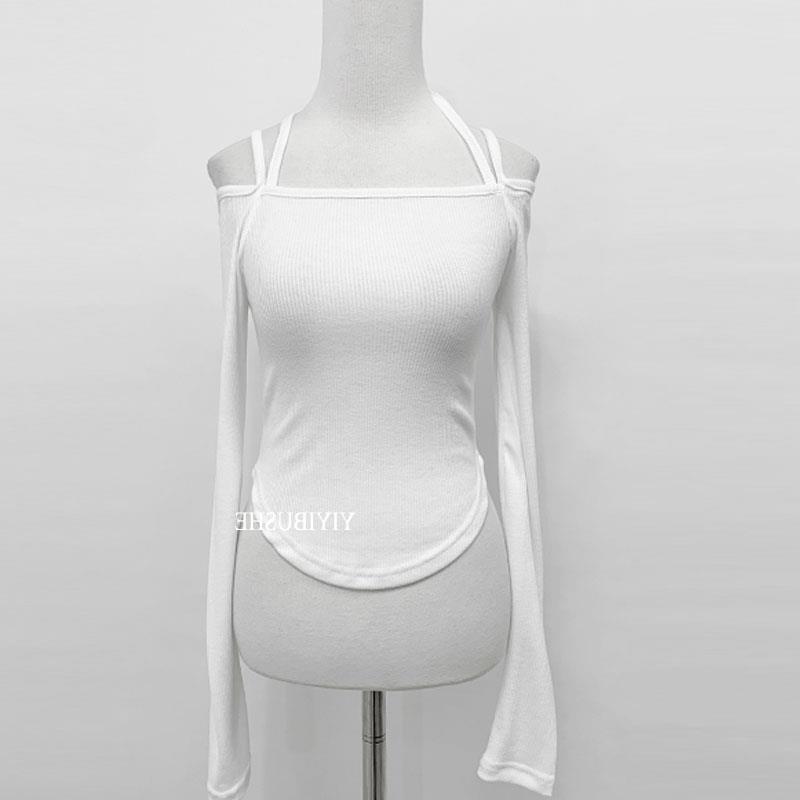 T恤sn 长袖 OnoevMQ390性感挂脖露肩 气质女人味螺纹修身