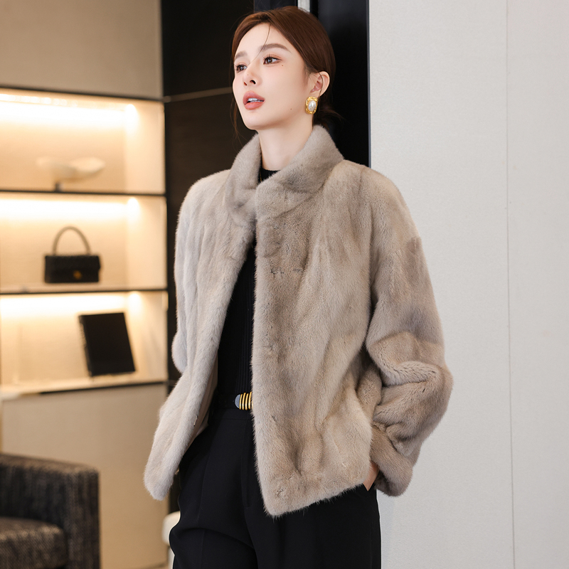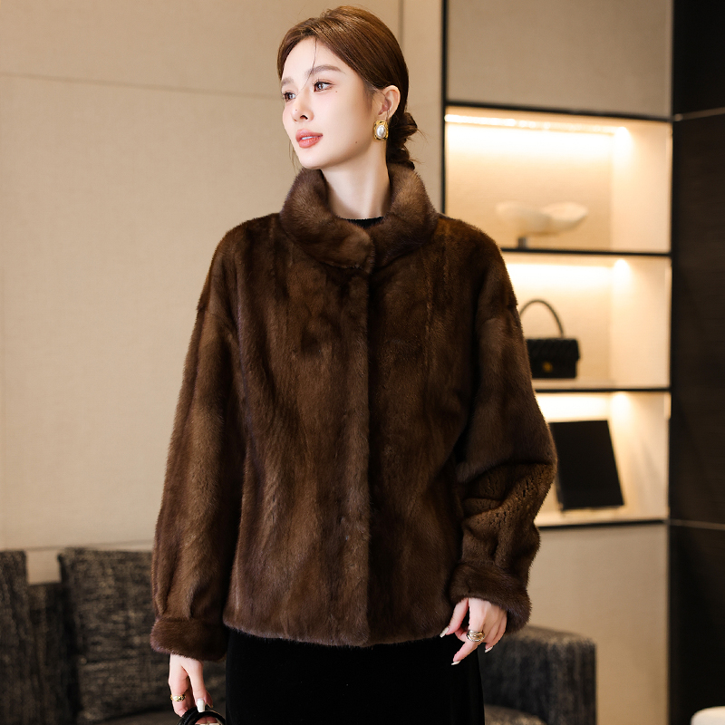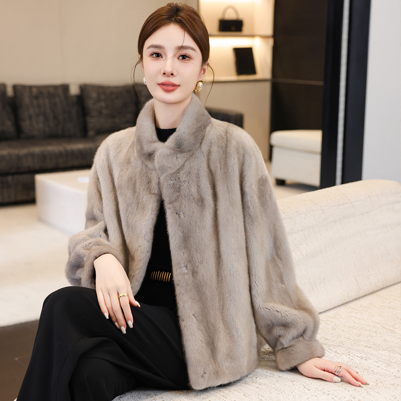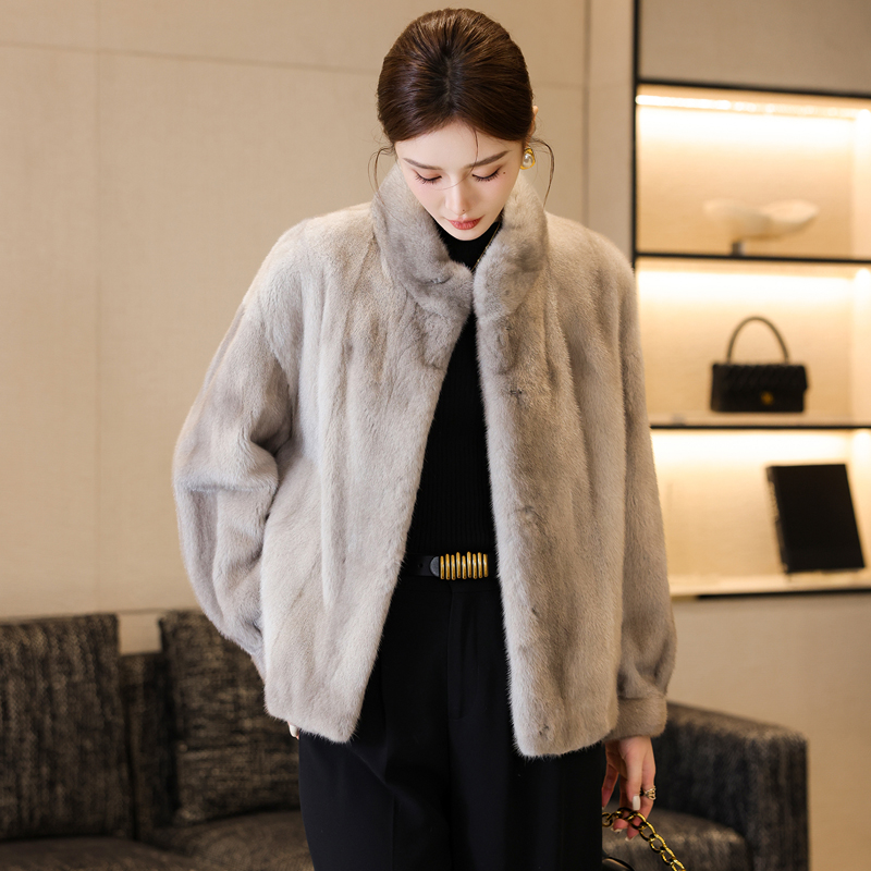 潮 整貂裘皮立领天鹅绒貂皮大衣短款 高端水貂毛皮草外套女冬季 新款