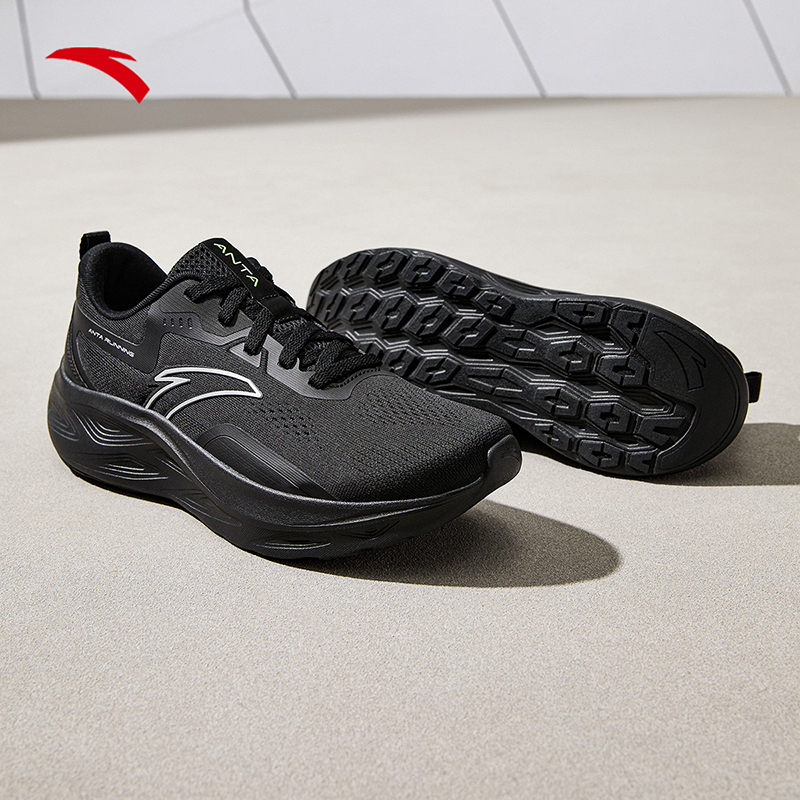 女鞋 上班不累脚妈妈全黑跑步鞋 黑色女款 子2025新款 女 鞋 安踏运动鞋