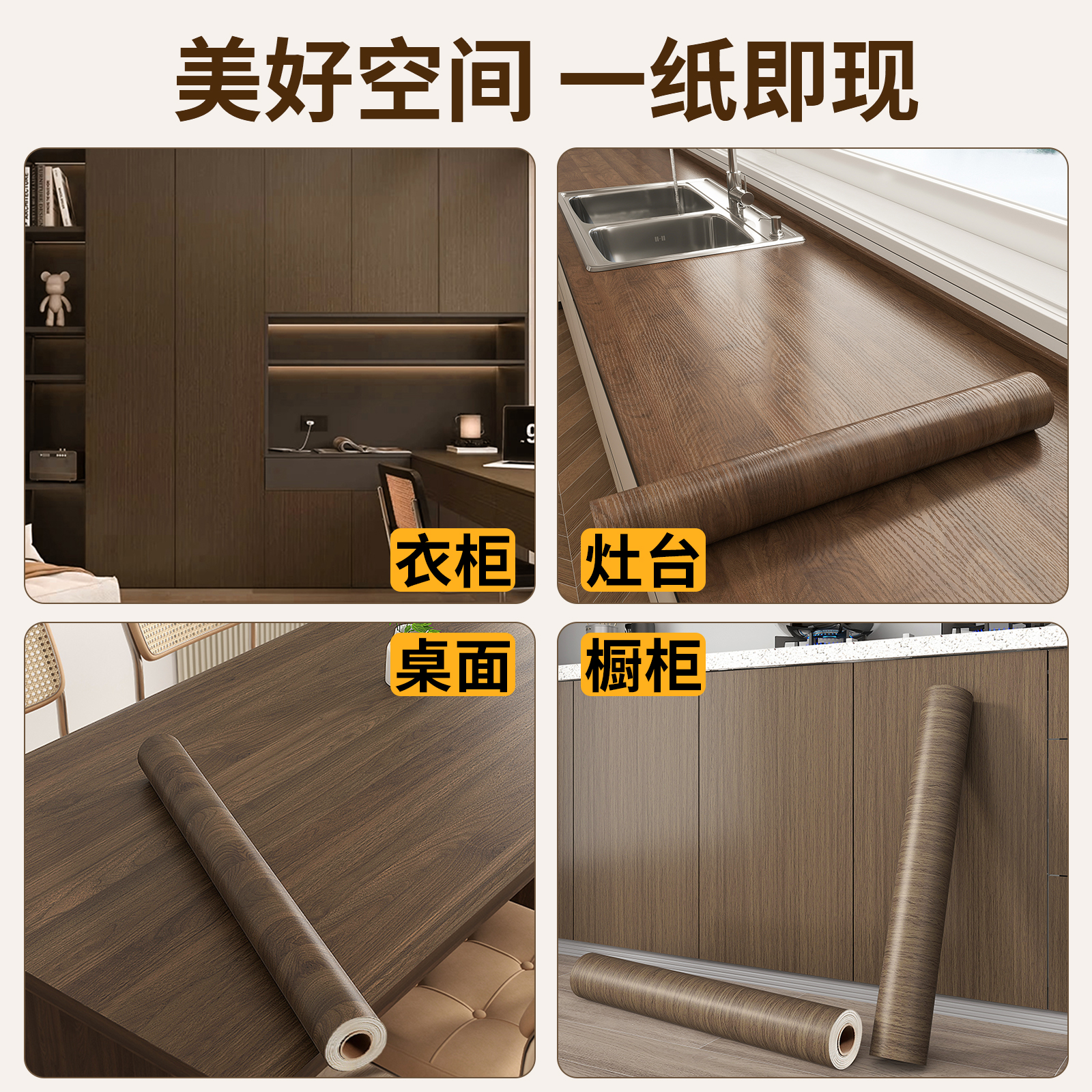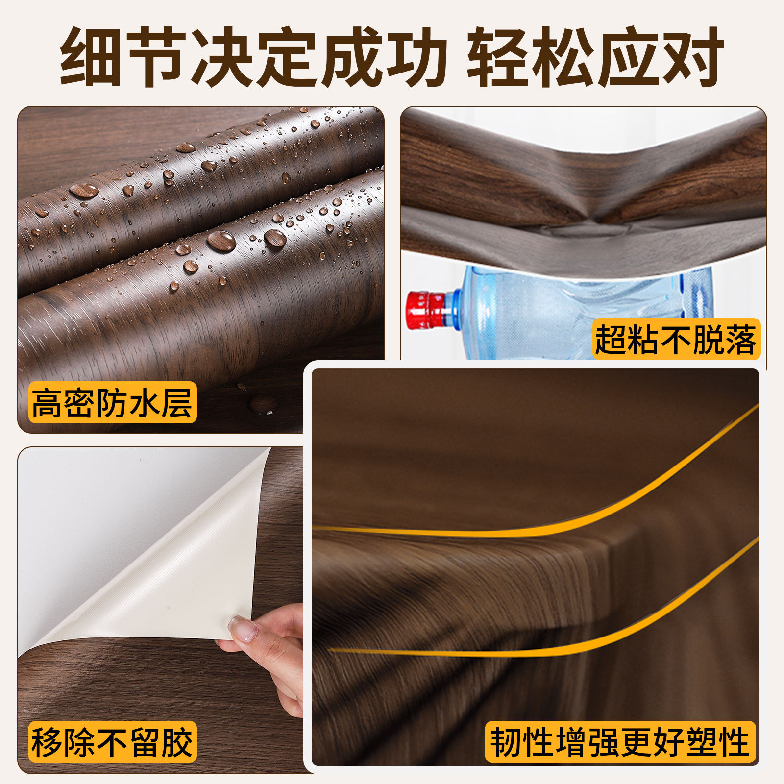 黑胡桃木纹贴纸自粘仿木防水波音软片木饰面贴皮家具翻新改色贴膜