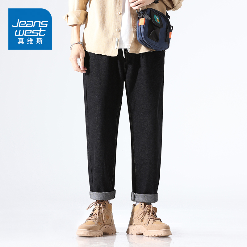 子 秋冬复古潮牌高街丹宁原色加绒直筒宽松长裤 马克华菲牛仔裤 男士