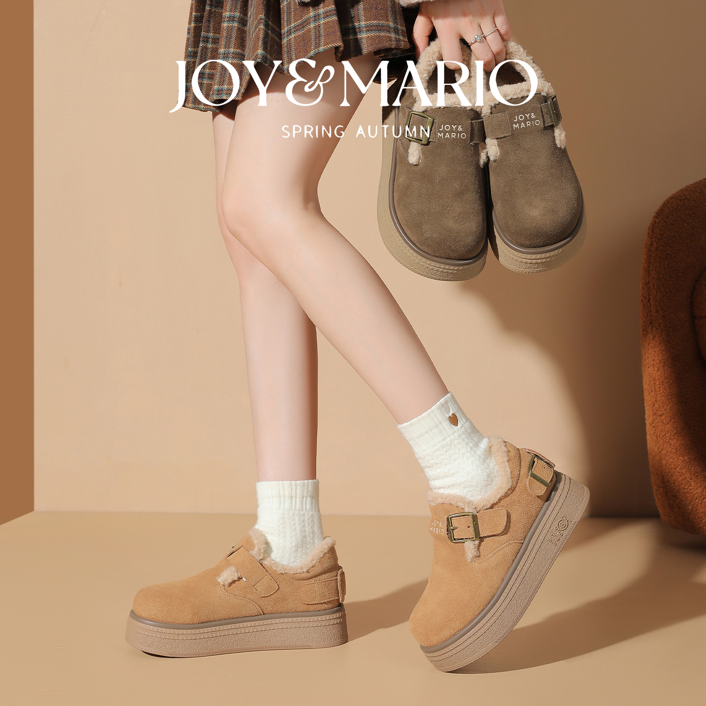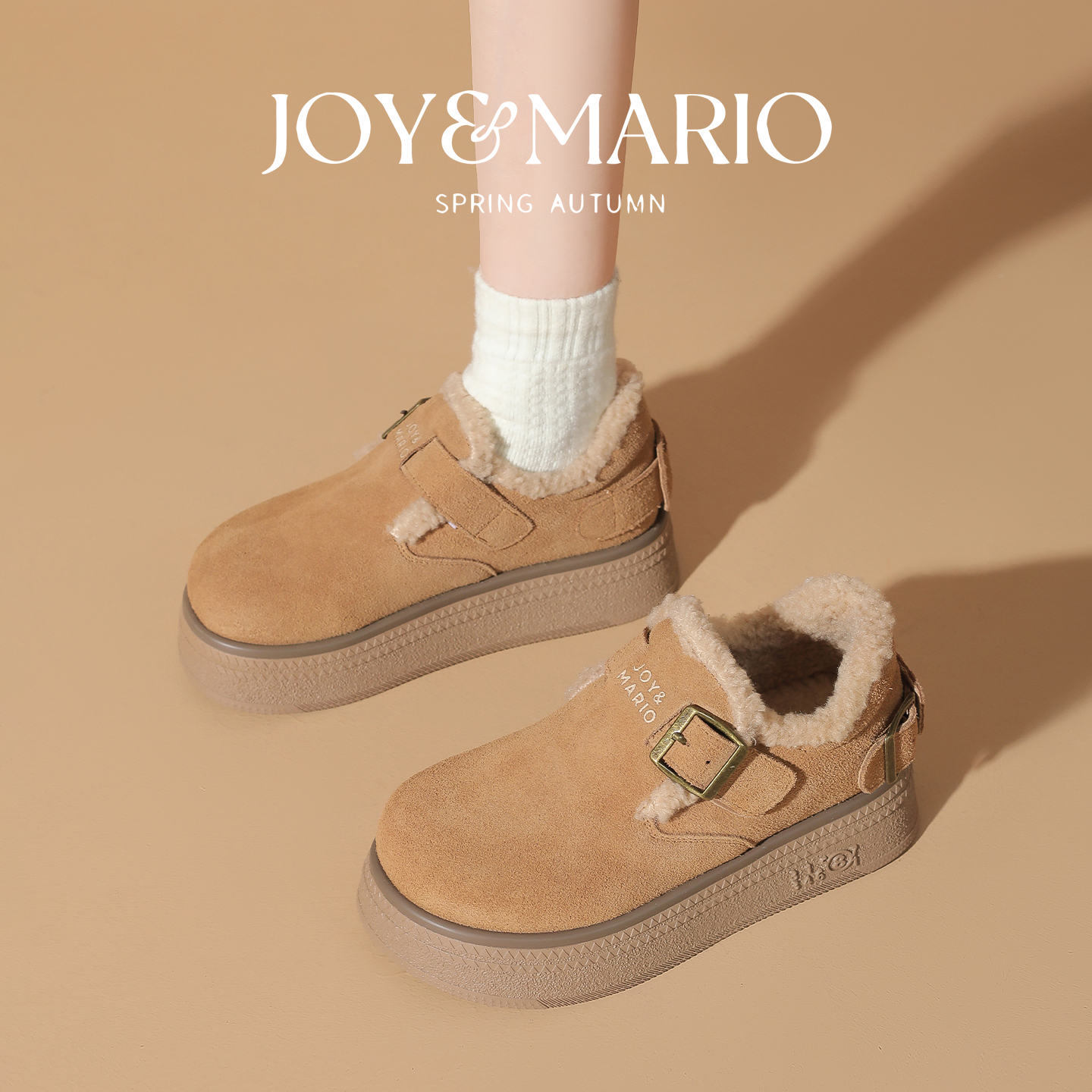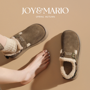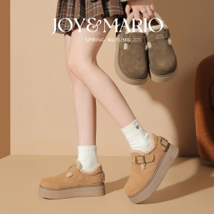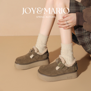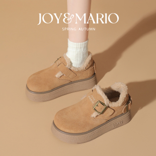 棉鞋 快乐玛丽勃肯鞋 一脚蹬真皮加绒厚底保暖毛毛鞋 新款 女2025冬季