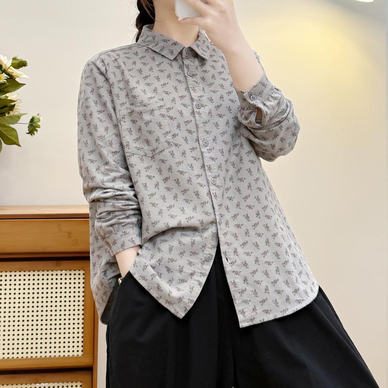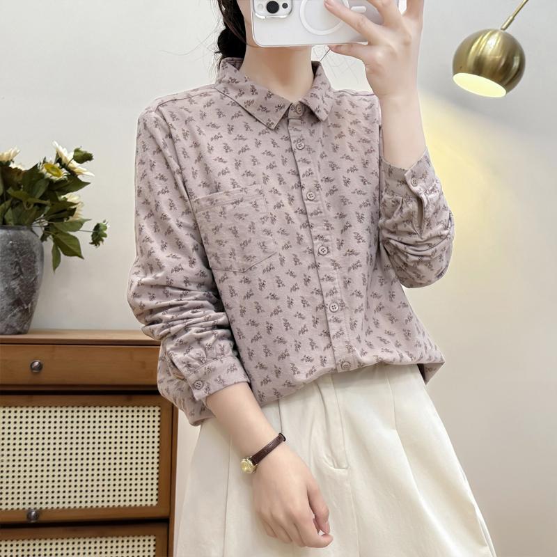 港味叠穿衬衣磨毛棉加厚打底衫 春秋款 女复古休闲衫 衬衫 小碎花长袖