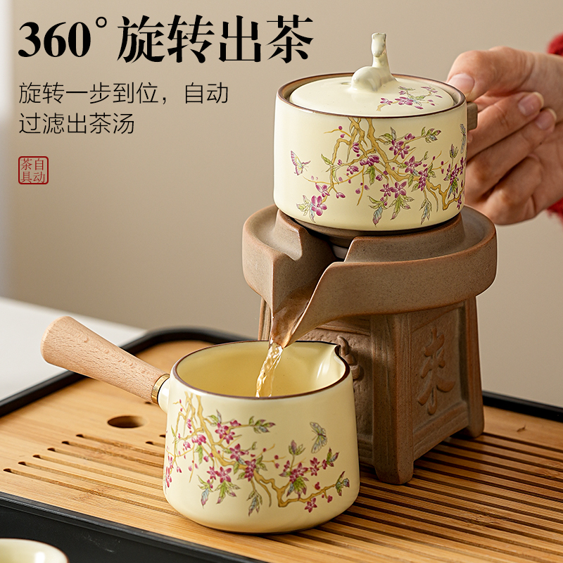 2025新款 家用高端精致自动石磨懒人泡茶神器功夫茶壶 汝窑茶具套装