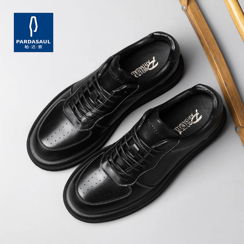 男新款 鞋 商务休闲鞋 潮流工装 240901 百搭透气真皮小黑鞋 帕达索板鞋