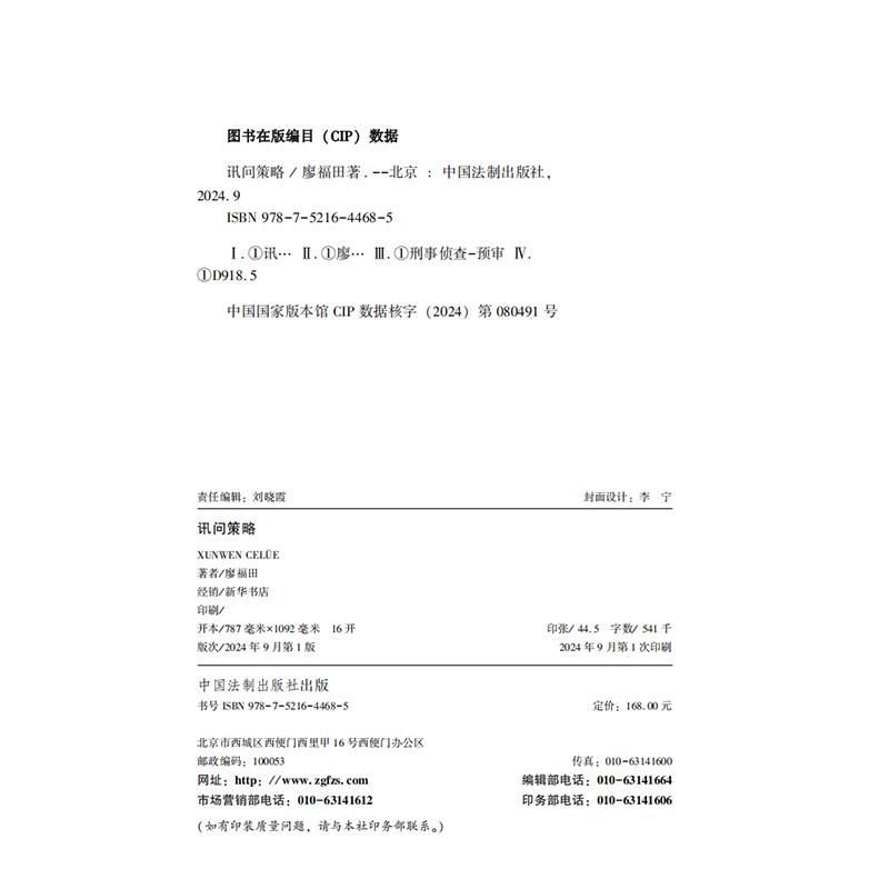 概述 社9787521644685 讯问策略 中国法制出版 审讯语言学 讯问步骤 实施 讯问策略运用中辩证方法 廖福田 2024新书 正版