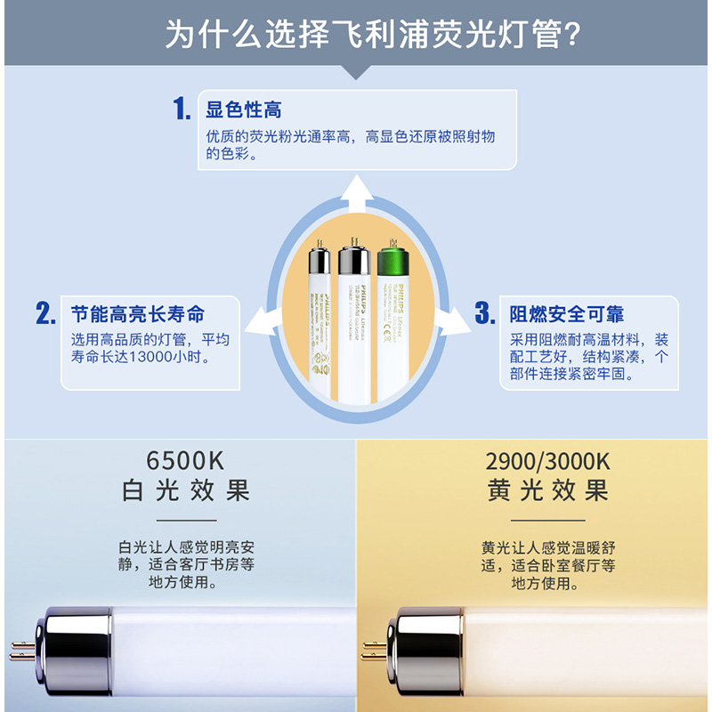 飞利浦TL5三基色荧光灯管8W14W21W28W865细直管840节能高亮t5灯管