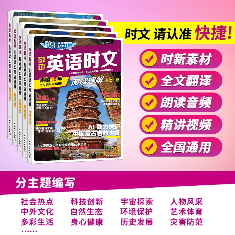 2025快捷英语时文阅读28期全国通用八年级阅读理解专项练习时文热点紧扣时事朗读音频全文翻译视频精讲正版 电力社官方旗舰店