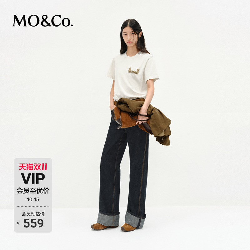 MOCO短袖 T恤全手工络花钻饰棉质圆领宽松MBE1TEE009