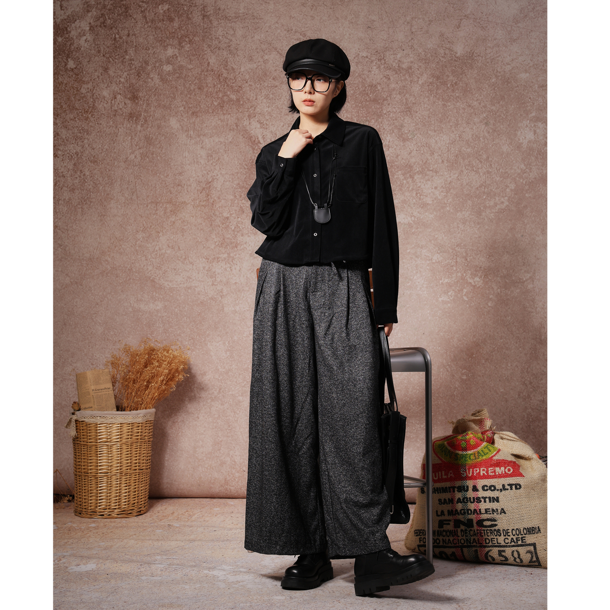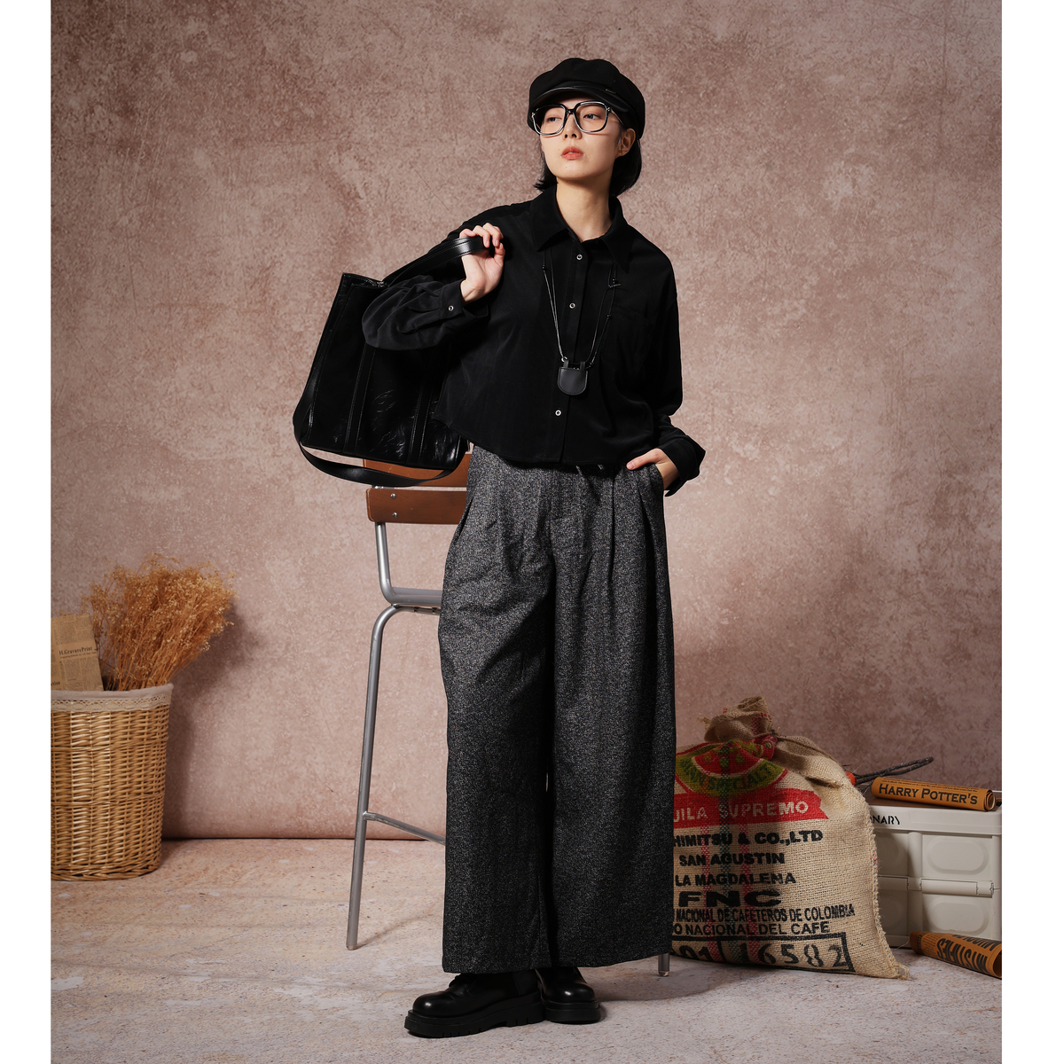 子XX9D10043 气质百搭裤 西町村屋花杂色大摆羊毛阔腿裤 女秋冬新款