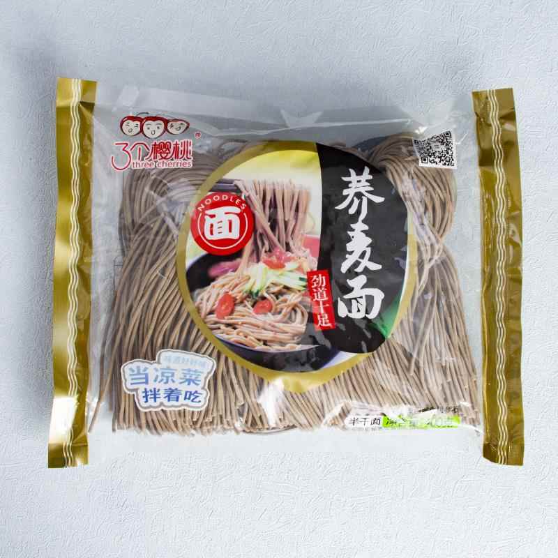 三个樱桃荞麦面细面400gX6袋速食低脂肪荞麦鲜面代餐待煮凉拌面条