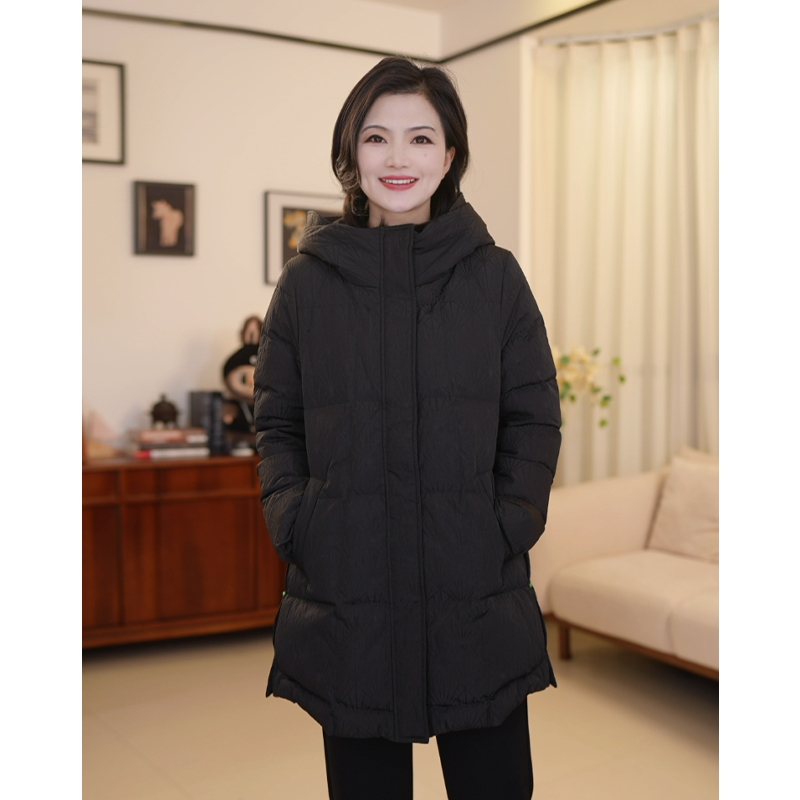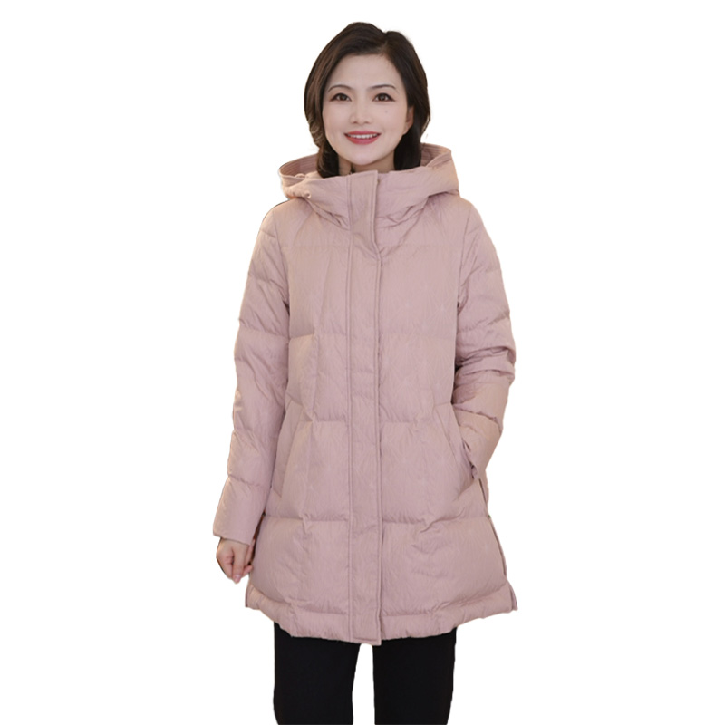 立领连帽保暖羽绒服女冬季 枫竺中长款 2025年粉色外套 90白鸭绒