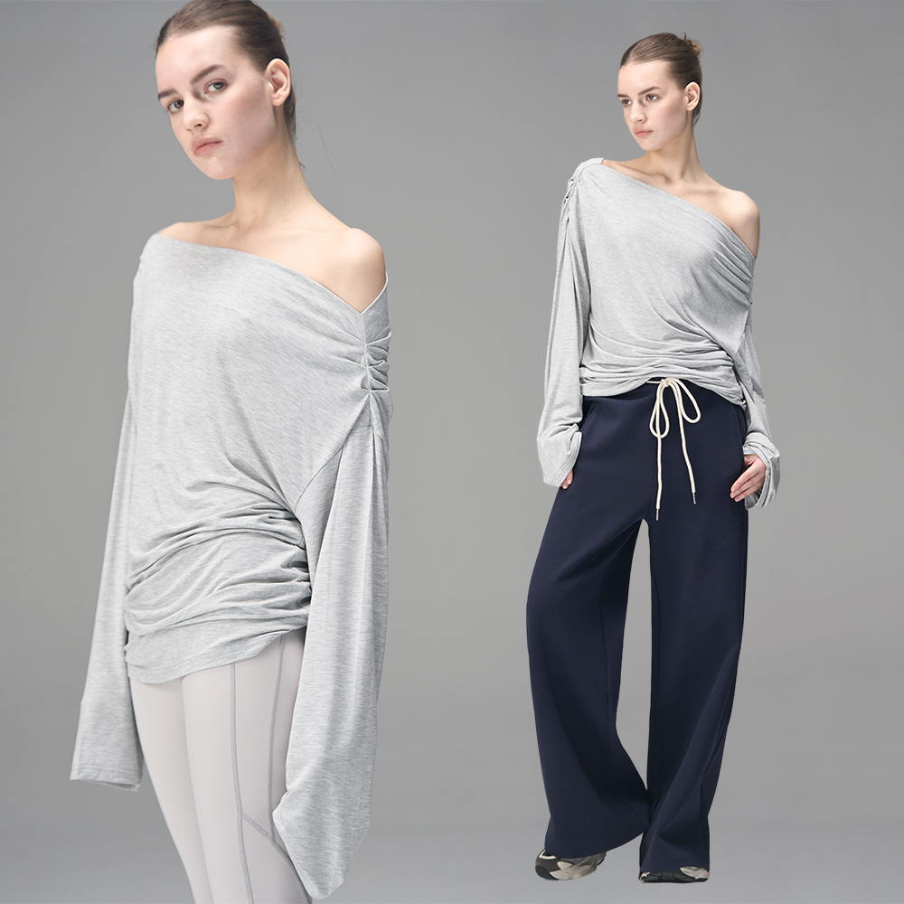 T恤女斜肩防晒上衣 荡领长袖 MISSCHANGE 兰精天丝莫代尔3种穿法