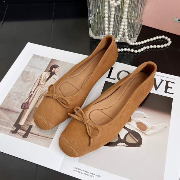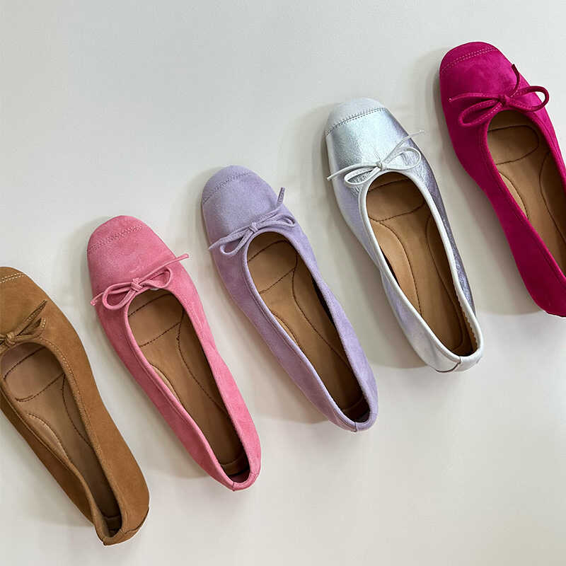 新款 女鞋 女士温柔蝴蝶结浅口单鞋 淑女平底单鞋 法式 热风2025年夏季