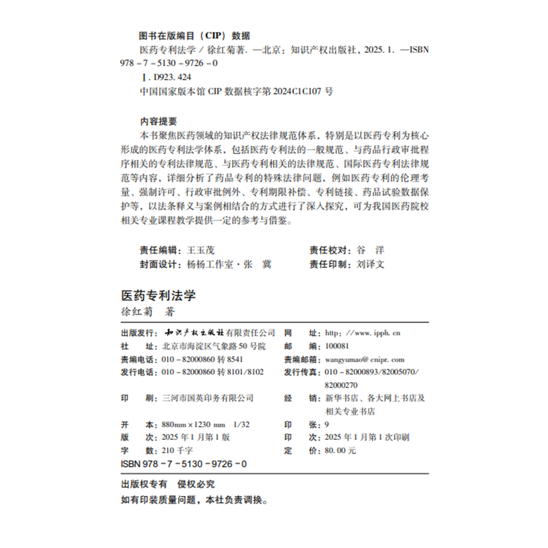 医药专利法学 社 徐红菊 知识产权出版 9787513097260 著 2025新书