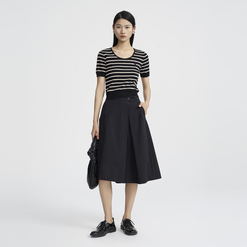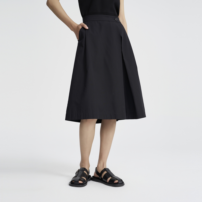 不规则打褶黑色腰裙女A型百搭休闲半身裙 春秋新款 OTT 商场同款