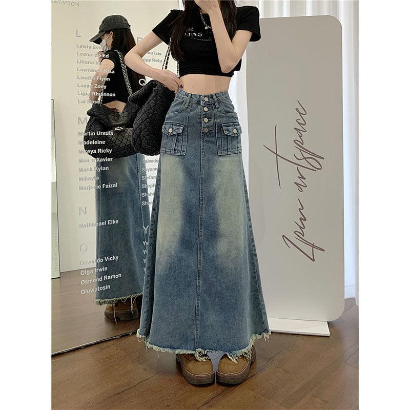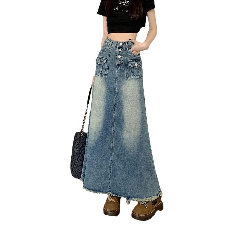 宽松显瘦中长款 裙半身裙女装 包臀裙港风定制 复古高腰牛仔工装 美式