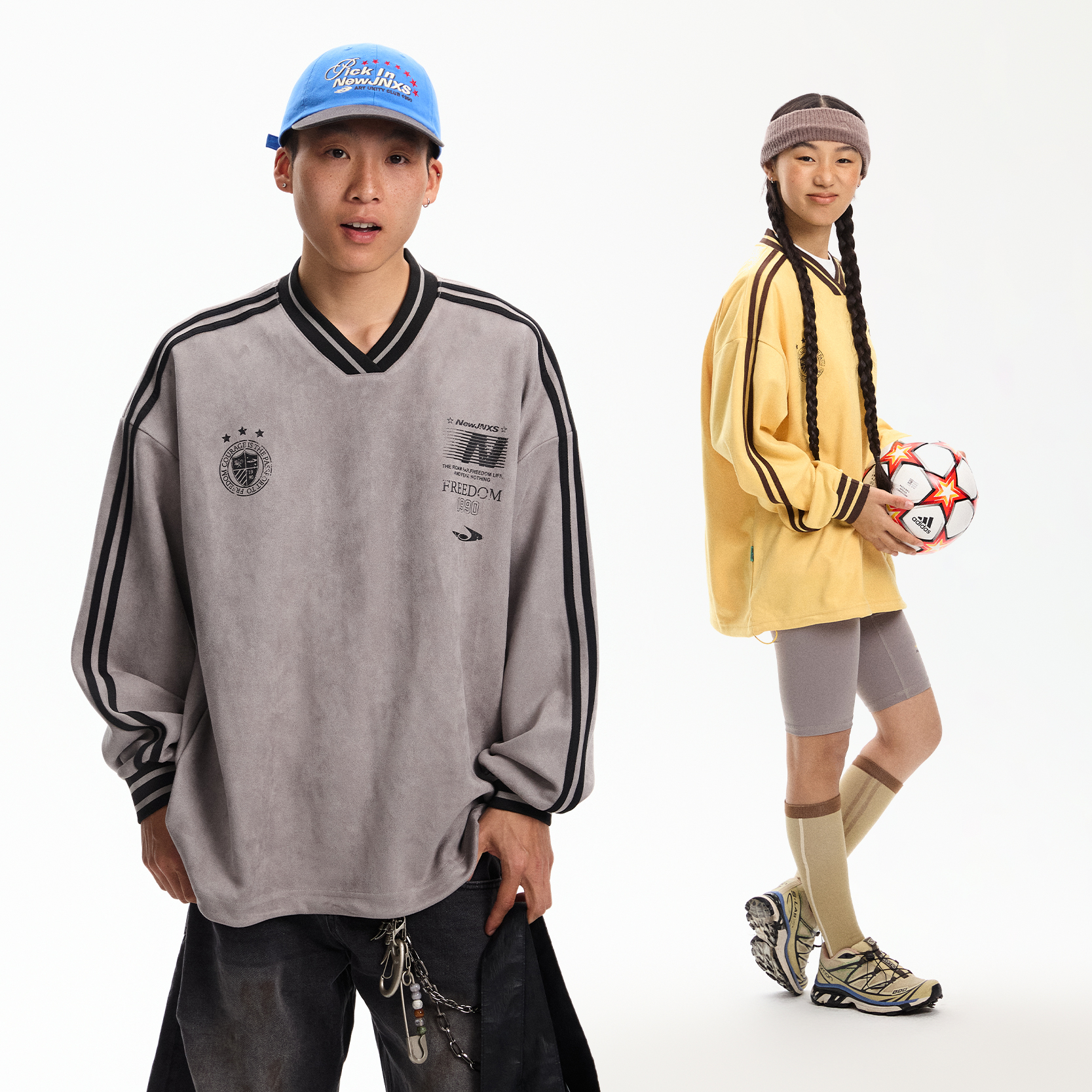 江南先生NewJNXS复古仿麂皮绒V领长袖 T恤秋男女宽松运动卫衣外套