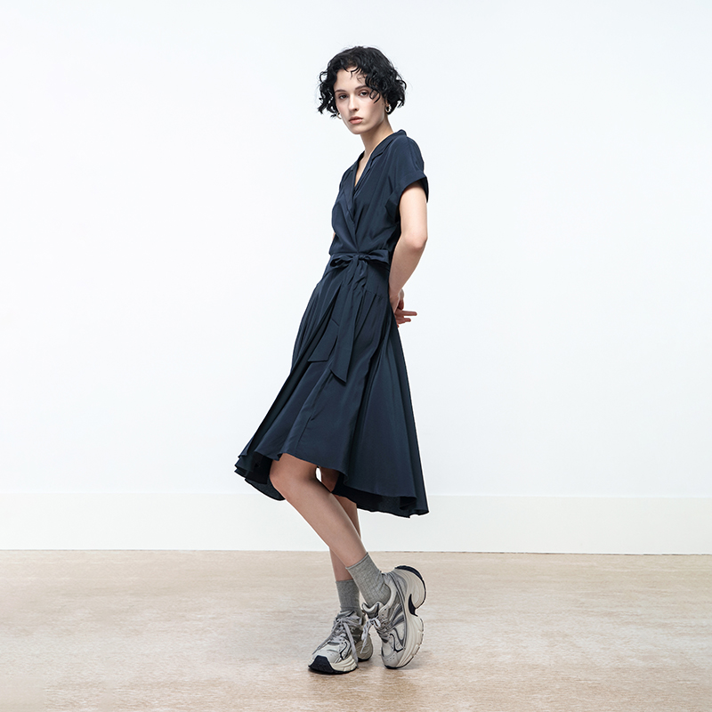 长袖 蝴蝶结领假两件连衣裙赫本风修身 2025秋新款 衣纱布菲墨夕