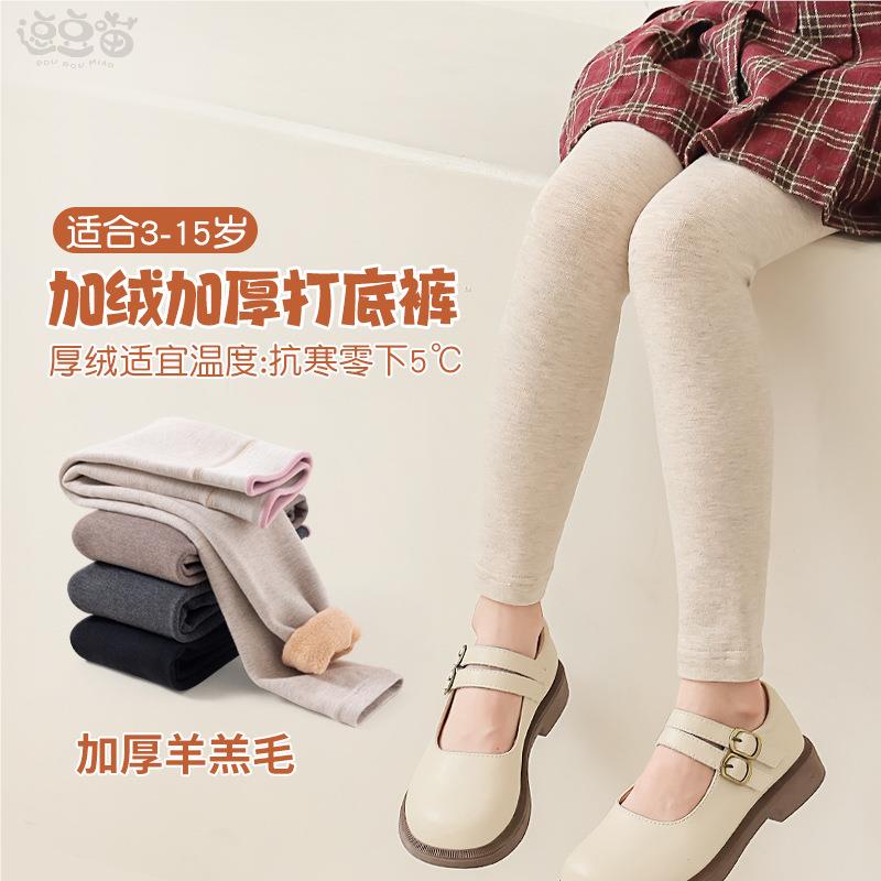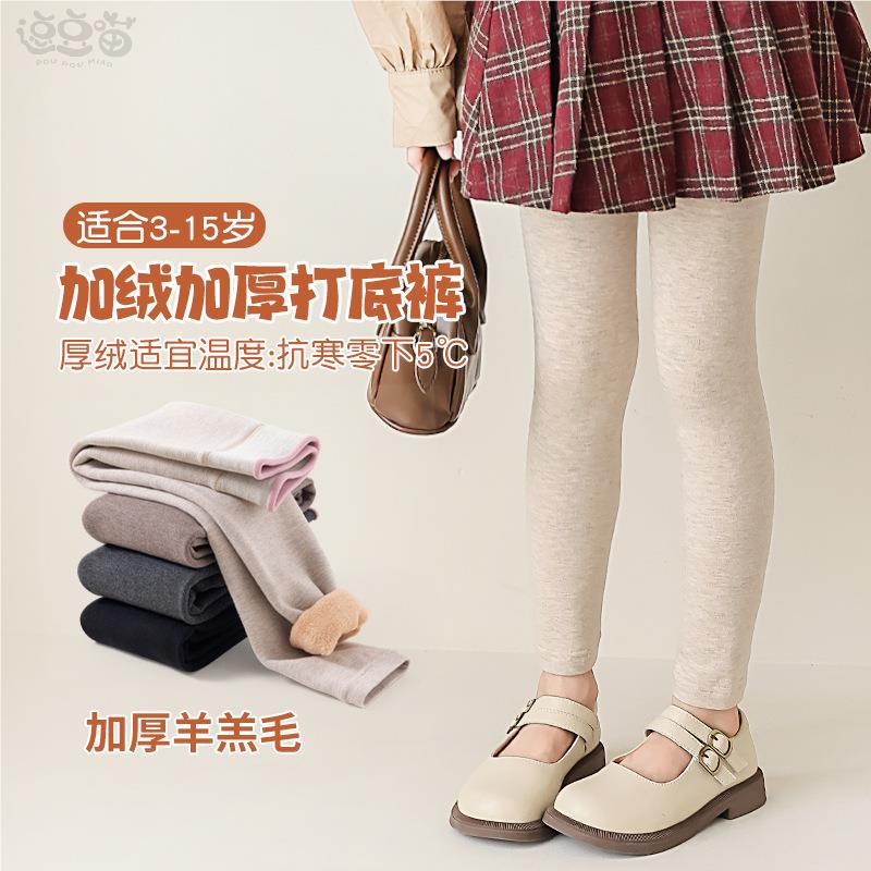 纯色女宝宝加绒加厚羊羔毛一体发热保暖裤 韩版 秋冬新款 女童打底裤