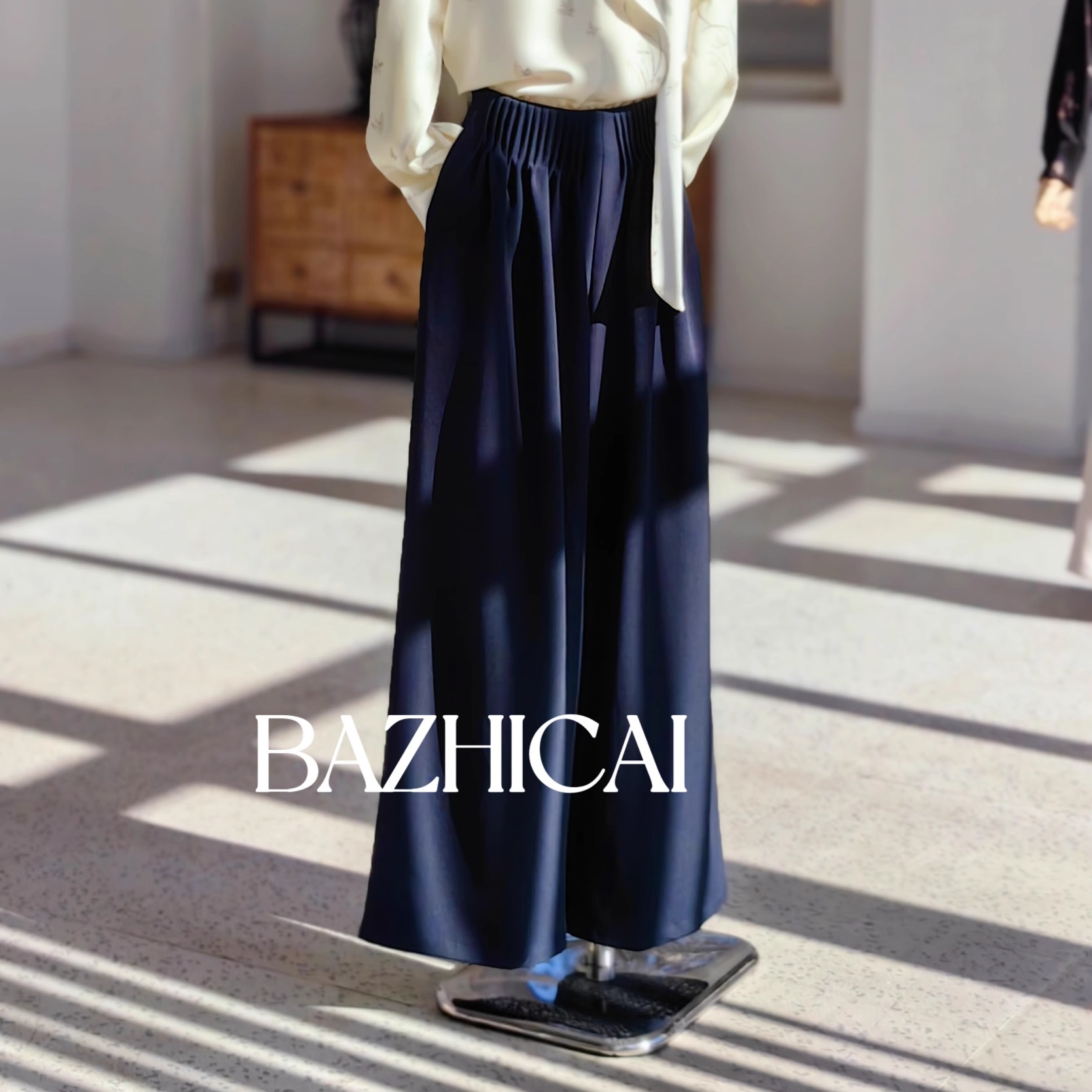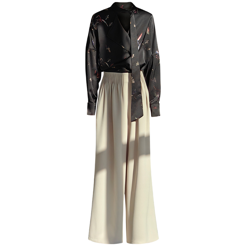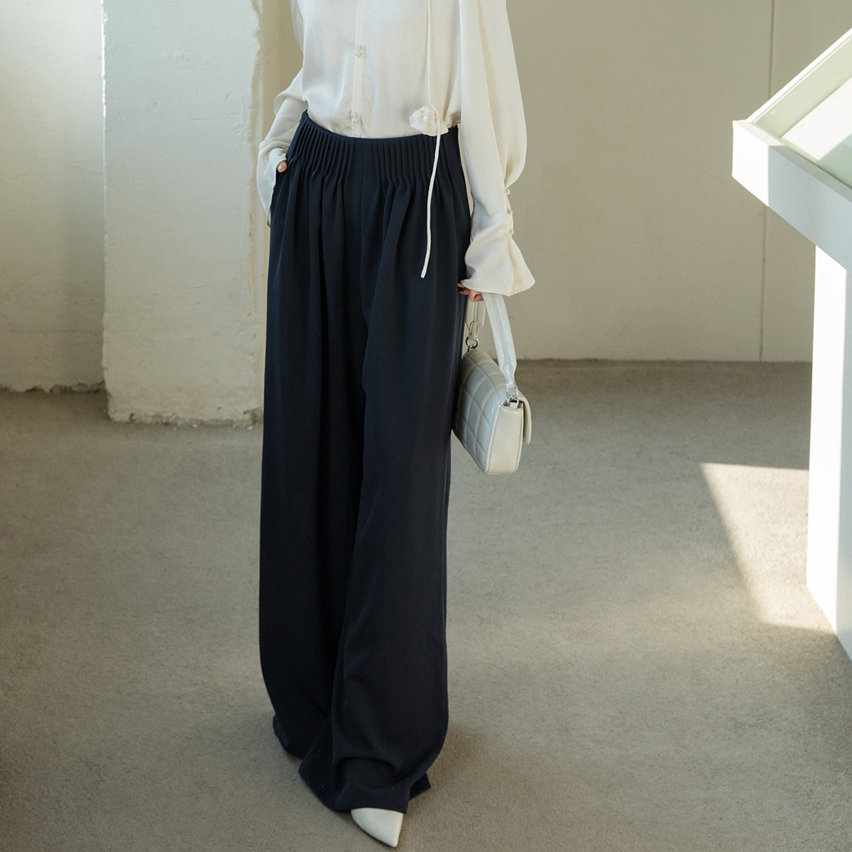 女春秋新款 休闲直筒慵懒松弛感裤 高腰垂感窄版 裤 子 西装 黑色阔腿裤