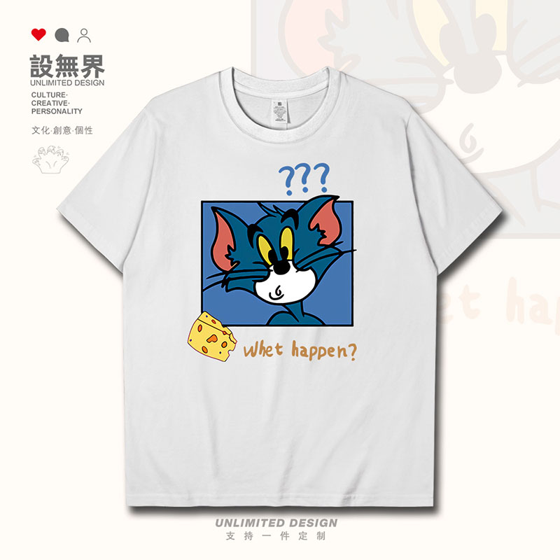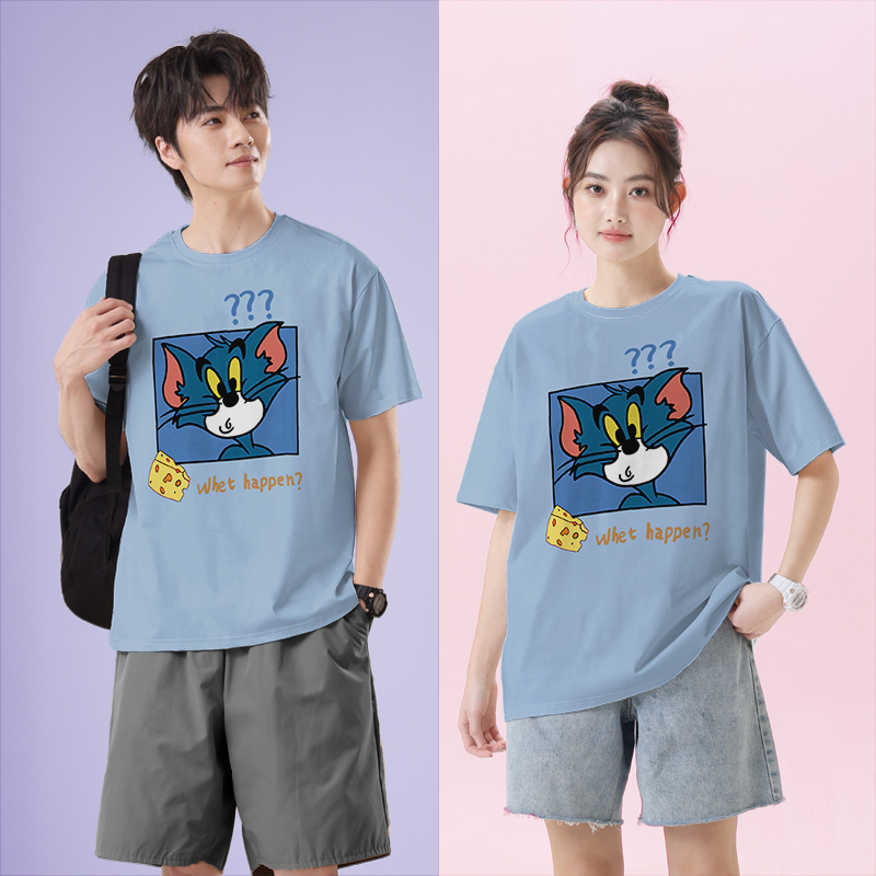 可爱猫和老鼠Tom搞怪表情情侣短袖 无界 T恤男女印花体恤潮0015设