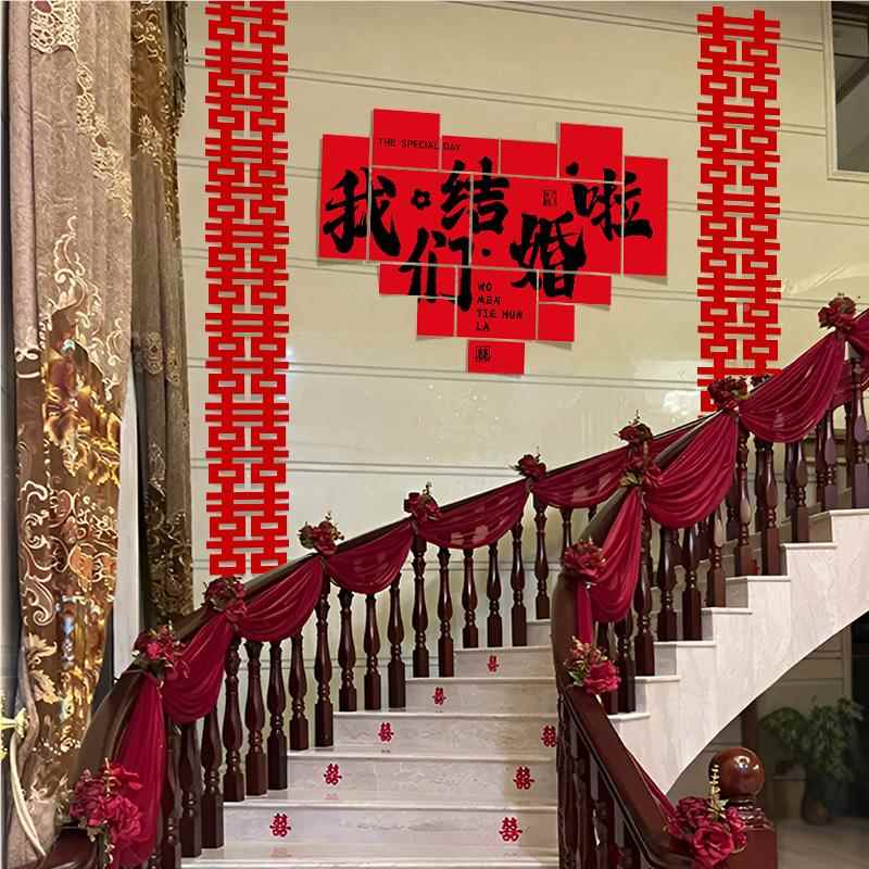 结婚用品婚房布置楼梯专用喜字贴婚礼场景装 扮 饰阶梯台阶现场装