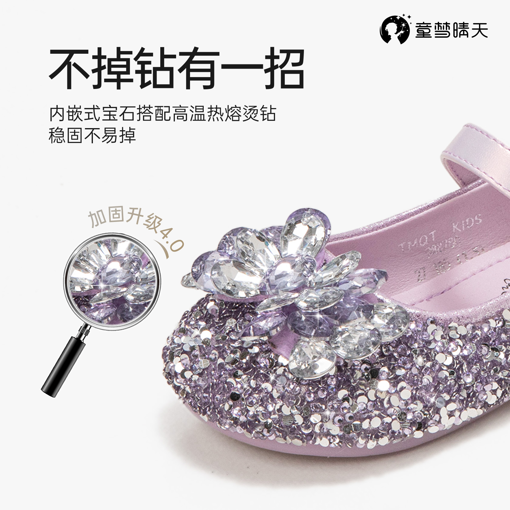 2025新款 女宝宝单鞋 儿童艾莎水晶鞋 紫色秋季 漂亮 小皮鞋 女童公主鞋