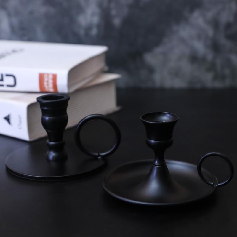 欧式 复古烛台铁艺烤漆黑色蜡烛台金属工艺品居家居家摆件摄影道具