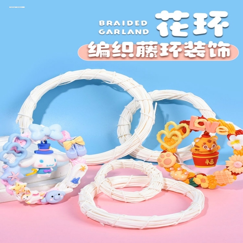 diy手工捕梦网松果藤条环白色藤圈圣诞花环学校幼儿园装 饰干树枝