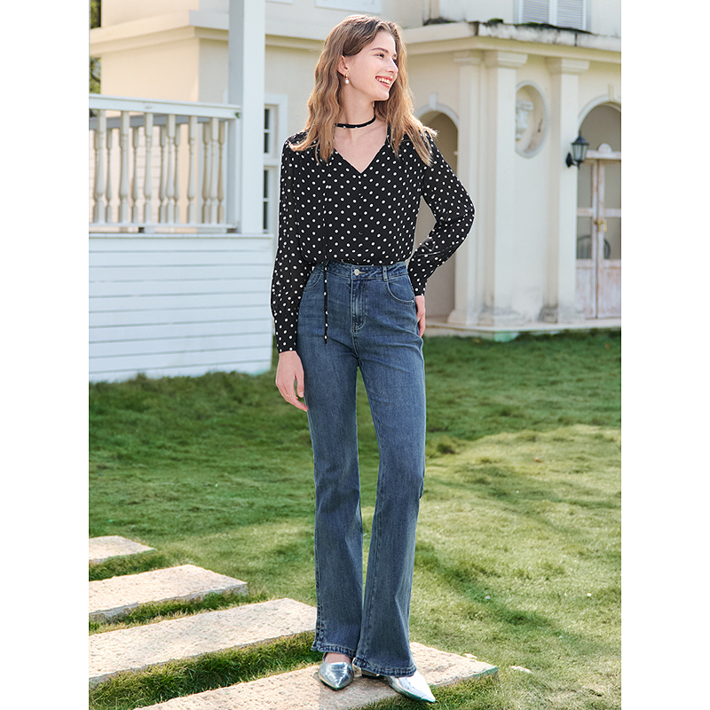纯棉法兰绒一字袋宽松长袖 佐丹奴美式 女装 子衬衫 衬衣13345859 风格