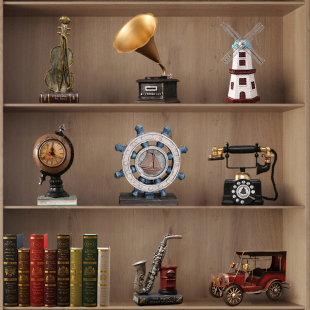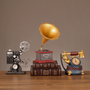 复古电话机留声机摆件美式 饰品书柜书架工艺品摆设 客厅酒柜柜子装