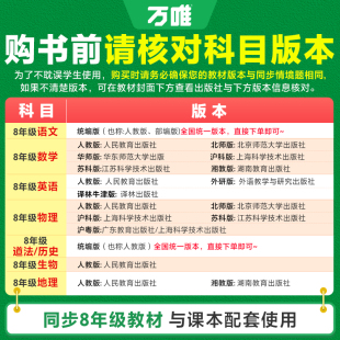 2026版 初二教材同步练习册基础知识真题模拟试刷题复习资料 25秋万唯中考同步基础题情境题八年级上下册语文数学英语物理生地人教版