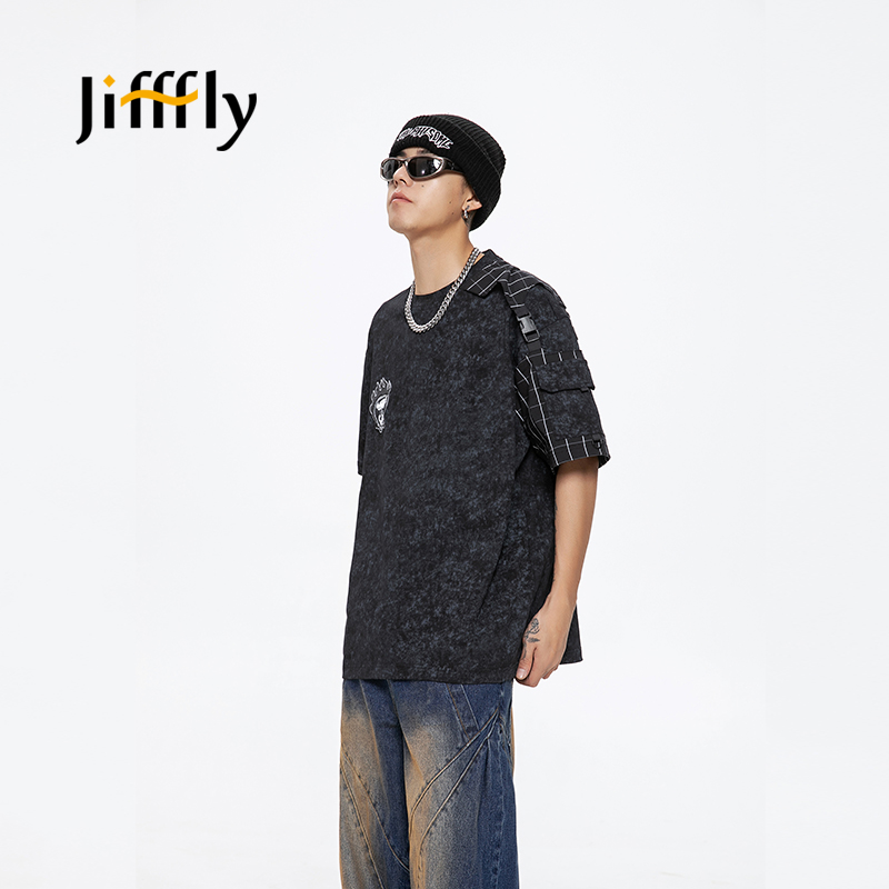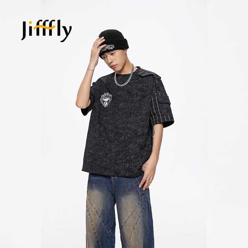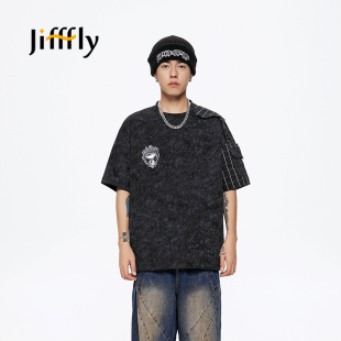 Jifffly秋冬美式 男潮牌百搭纯棉T恤宽松圆领内衬青年上衣 复古短袖